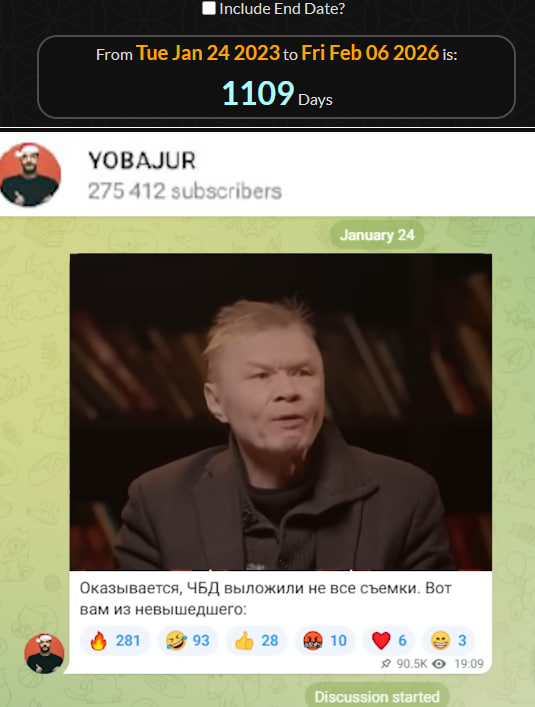 24 января 2023 ровно за 1109 дней до запрета на въезд в телеграмм-канале, связанном с ЧБД, был опубликован фрагмент с Александром Башировым, который так и не вышел в эфир. В этом отрывке Баширов произносит пророческие слова в адрес Сабурова: "- Придет день, когда ты рассыпешься как карточный домик" - и плюется водой.