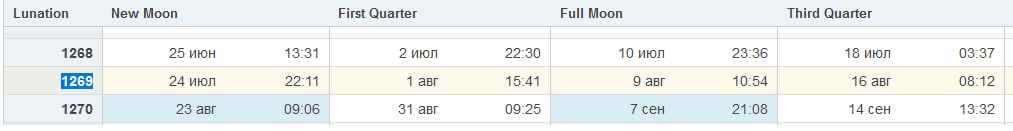 22-23 июля - последние дни 315-й лунации по Мёусу (lunation 315 of Meeus) https://lunaf.com/lunar-calendar/2025/07/23/ .