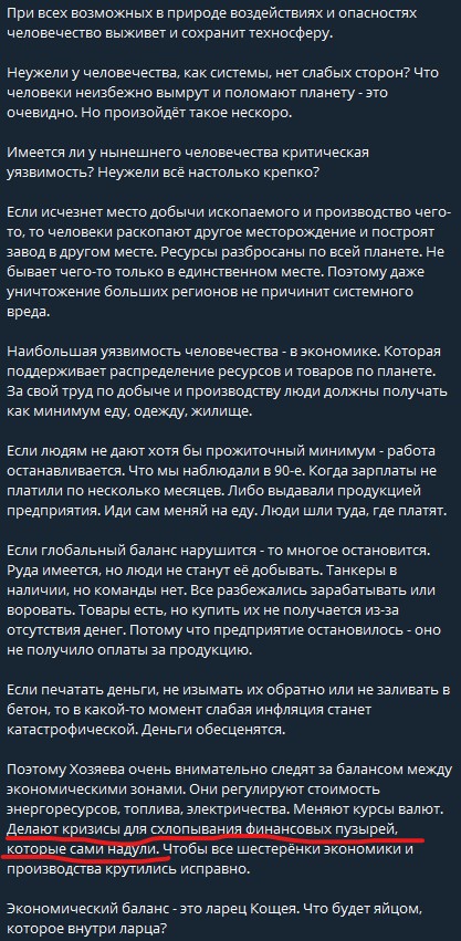 В любом случае как я уже 100 раз повторил - всё идёт по накатанной...Никаких сбоев ....Никаких глобалистов которые могут чему-то помешать. ИХ быть не может...Одно из свойств времени - оно циклично...Всё повторятеся уже бесчисленное количество раз...Если кто-то думает что в ЭТОМ-ТО цикле системы в котором мы сейчас живём может пойти что-то не так и какие-то там Глобалисты могут нарушить ход вещей/событий, то он ошибается... Незначительные сдвиги могут быть и отклонения, но в масштабе: "возьмёте вы сегодня фруктовое мороженное или обычный пломбир" Повлияет ли это на вашу судьбу?Сильно повлияет?... Так же и тут...то есть эти отклонения и свободы они могут быть, но ВЦЕЛОМ ни на что они не повлияют...