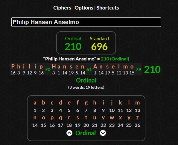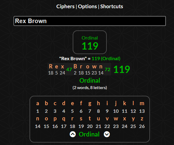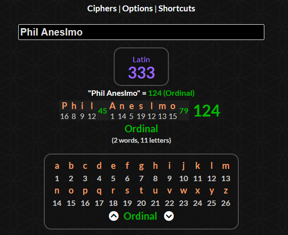 Помимо Даймбега Даррелла (бывший псевдоним Diamond Darrell, имя при рождении Darrell Lance Abbott), в составе группы Pantera находились басист Rex Brown (в ordinal гематрии 119), барабанщик Vincent Paul Abbott известный под псевдонимом Vinnie Paul (в ordinal гематрии 123), а также вокалист Philip Hansen Anselmo (в стандартной гематрии 696) известный под псевдонимом Phil Anselmo (в латинской гематрии 333).