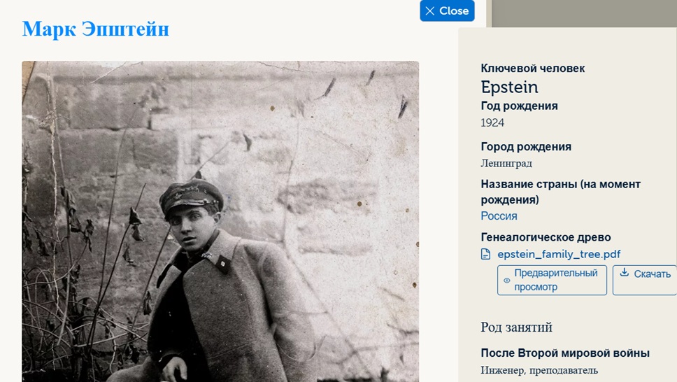 И первый в поиске был Марк Эпштейн . Он родился в Ленинграде 26 марта 1924 года в семье Евгения Марковича и Евгении Яковлевны Эпштейн.