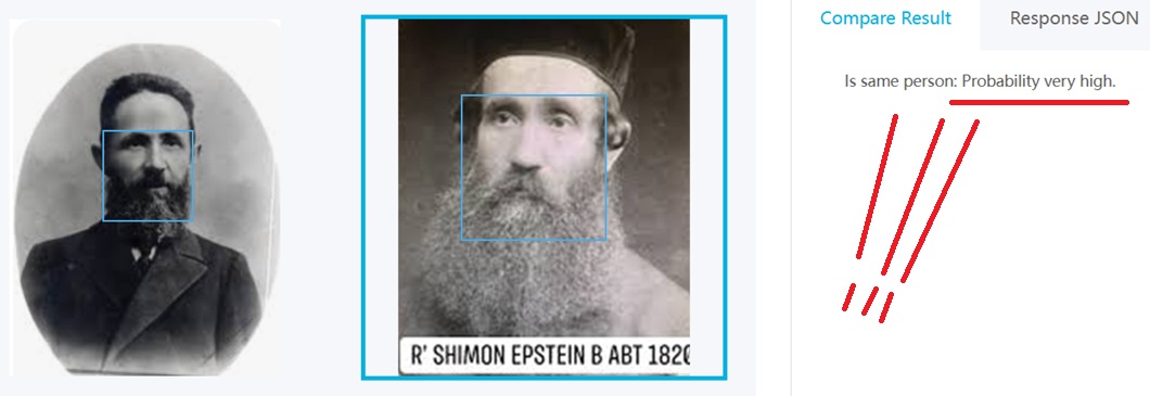 Добавила потом фотографию деда Эпштейна по отцу Путина . И опять бинго !!! Генетическая связь правда не высокая , а нормальная .. Но нормальная связь может быть даже у отца и сына , если они не очень друг на друга похожи .. А может нормальная связь быть у племянника и дяди , или внука и деда ..